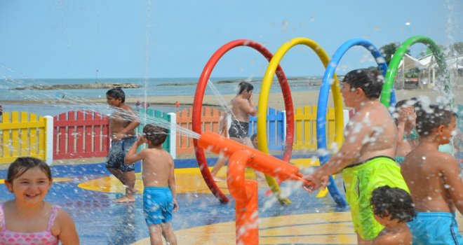 Ordu Büyükşehir Belediyesinin Altınordu ilçesi Akyazı sahilinde hizmete açtığı “Su Oyun Parkı” çocukların ilgi odağı oldu.