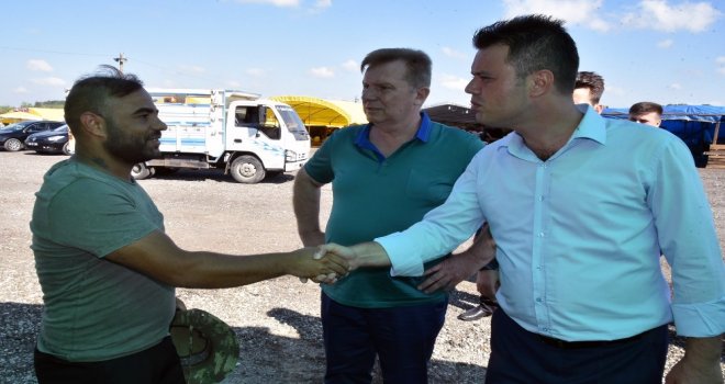 Başkan Sarıkurt, daha sonra üreticileri ziyaret ederek görüş ve taleplerini dinledi. Üreticilerle bir süre sohbet eden Başkan Sarıkurt kendilerine hayırlı işler dilerken alandan ayrılmadan önce üreticilerle ziyaretin anısına fotoğraf çektirdi.