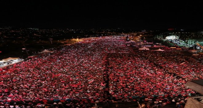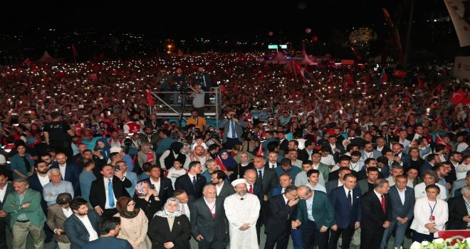 Cumhurbaşkanı Recep Tayyip Erdoğan, kürsüye ‘Bil Oğlum Türküsü ile çıktı. Cumhurbaşkanı Erdoğan konuşmasına başlamak için türkünün bitmesini bekledi. Vatandaşlar ellerinde Türk bayrağıyla türküye eşlik etti.