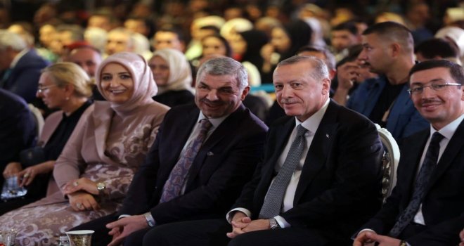 İl Müftüsü Şahin Güvenin kıydırdığı nikah sonrasında evlilik cüzdanını geline veren Cumhurbaşkanı Erdoğan, Mutluluklar paylaştıkça çoğalır. Sizlere bir nasihatim var. Bir olur garip olur, iki olur rakip olur, üç olur dengi olur, dört bereketli olur. Gerisi Allah kerim. Güçlü alileler güçlü milleti oluşturur dedi.