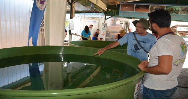 Merkeze gelen yerli ve yabancı turistler, Caretta Carettalar ile diğer deniz kaplumbağaları hakkında bilgilendiriliyor.