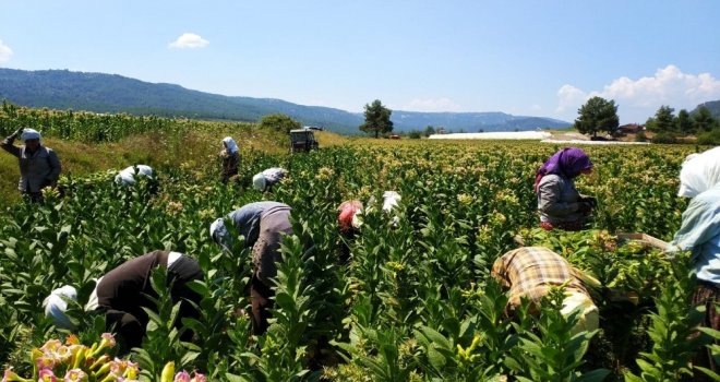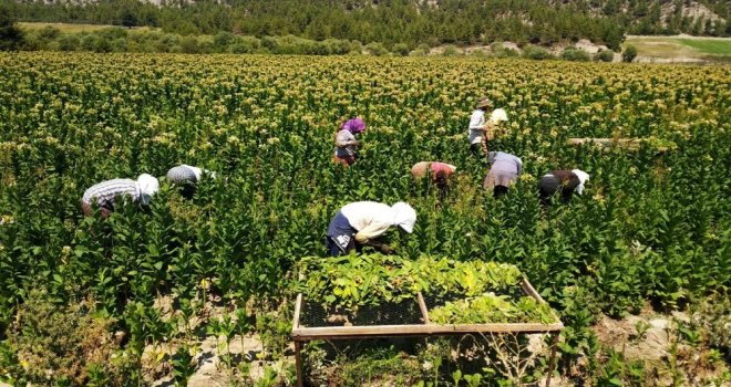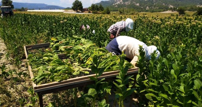 Tütün kırma işini çoğu çiftçi, günlük 100-120 liraya çevre köylerden gelen tütün işçilerine yaptırıyor. Tütün tarlalarında çalışmak için gece yarısında evlerinden çıkan işçiler, güneşin henüz doğmadığı tütün tarlalarında lambalar yardımıyla tütün topluyor. Tek tek toplanan tütün yaprakları, olgunluk seviyesine göre farklı aralıklarda iki ya da üç seferde toplanıyor. Çiftçiler, bin bir emekle ekilen ve toplanan tütünleri “elek” adı verilen tellerin üzerine yerleştirip kuruması için seralara götürüyor. Dışarıya göre sıcaklığın dört kata kadar arttığı seralarda, toplanan tütünlerin kuruma süresi de azalıyor. Tütünlerin seralarda kısa sürede kuruması çiftçilere hasat döneminde zaman tasarrufu sağlıyor. Seralarda kuruyan tütünler bezler içerisine koyulup istifleniyor. Tütünler, istifte bez içerisinde hasat döneminin bitip kolilere koyulmayı ardından da satılmayı bekliyor.
