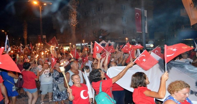Didim Belediyesi önünde başlayan fener alayı öncesinde dev Türk Bayrağı ile Atatürk Portresi Didimlilerce taşınırken, motosikletli ve bisikletli ekiplerde yürüyüşe destek oldu. Yaklaşık 5 bine yakın Didimli ellerinde Türk bayrakları ve Fenerlerle yürüyüşe katılırken, bulvar ve cadde esnafı da alkışlarla yürüyüşe destek oldu.
