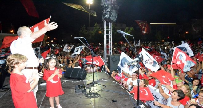 Yürüyüşün ardından Kent Meydanına dolduran Didimlilere seslenen Belediye Başkanı A. Deniz Atabay, tüm Didim halkının Zafer Bayramını kutlayarak “96 yıl önce bugün bir avuç kendisini zafere inanmış insan ile Ulu önder Mustafa Kemal Atatürk, 19 Mayısta Samsuna çıktığında ülke bitap halindeydi. O mavi gözlü dev Kurtuluş savaşını başlatarak ülkeyi müessir medeniyet seviyesine çıkartıp bize teslim etti. Bugün 96 yıl sonra aynı piyonlar yine yapılıyor. Bu emperyalist güçler kan akıtarak kardeş savaşını başlatarak bize bölmeye çalışıyor. Bizler kötü günler gördük ve geçirdik ama bu meydanı dolduran milyonların sayesinde biz bu ülkeyi böldürmeyeceğiz. Atatürkün bize emanet ettiği bu ülke bölünür mü? Hayır tabii ki de bir ve beraber olup ülkemize ve Atatürkümüze sahip çıkacağız.”dedi.