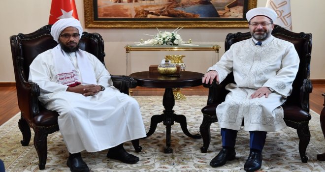 Diyanet İşleri Başkanı Prof. Dr. Ali Erbaş, Sudan Alimleri Heyet Başkan Yardımcısı Dr. Abdulhay Yusufu ve beraberindeki heyeti kabul etti. Ziyaretten duyduğu memnuniyeti dile getiren Erbaş, Türkiyede Sudanlıların ayrı bir yeri olduğunu belirtti.