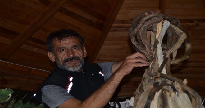 Doğada Görevini Tamamlayan Ağaçlarla Sanat Yapıyor