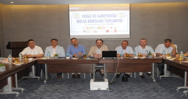 Doğu ve Güneydoğu Anadolu Bölge Baro Başkanlarının toplantısı Şırnakın Cizre ilçesinde gerçekleştirildi. Şırnak Barosunun ev sahipliğinde bir araya gelen Adıyaman, Ağrı, Batman, Bitlis, Bingöl, Diyarbakır, Hakkari, Mardin, Muş, Siirt, Şanlıurfa, Van ve Tunceli Baro Başkanları gündeme dair, siyasal, toplumsal ve hukuksal sorunları masaya yatırdı.