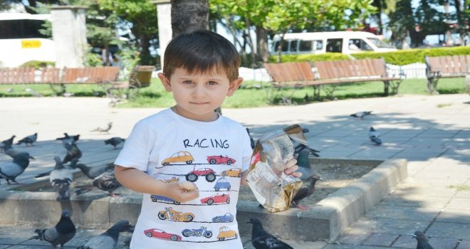 Ordunun Ünye ilçesinde 3 yaşındaki Deniz Çağlar Güleç, ailesiyle beraber her gün Ünye Cumhuriyet Meydanına güvercin beslemeye geliyor.