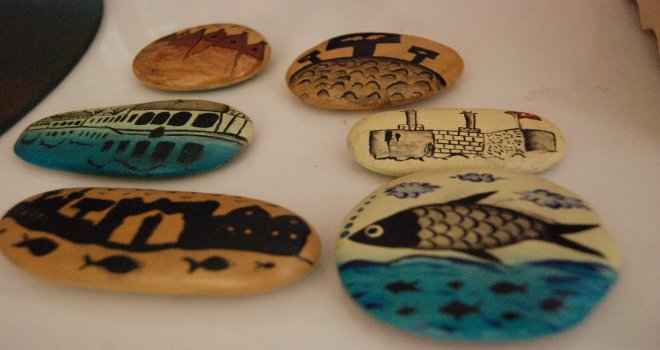 Şanlıurfada kadınlardan oluşan kursiyerler, taş ve ahşap gibi malzemeleri boyayarak sanata dönüştürüyor.