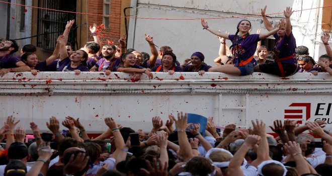 Dünyanın en büyük yemek savaşı “La Tomatina” başladı. Festival, Valencia şehrinin yakınında bulunan Bunol kasabasında her yılın Ağustos ayının son Çarşamba gününde düzenleniyor. Yetkililer bu yılki savaşa 22 binden fazla kişinin katıldığını açıkladılar. Bu yıl Bunol kasabasına kamyonlarla 145 ton domates taşındı.