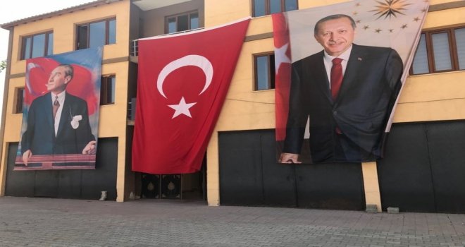 Hakkarinin Durankaya Belediyesi, 30 Ağustos Zafer Bayramı nedeniyle Türk bayrakları ve Cumhurbaşkanı Erdoğanın postalarıyla süslendi.