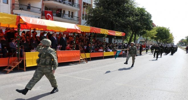Tören, Atatürk Anıtı!na çelenklerin sunulmasının ardından Vali Özdemirin makamında tebrikleri kabul etmesi ve askeri birliklerin geçit töreni ile son buldu.