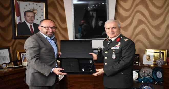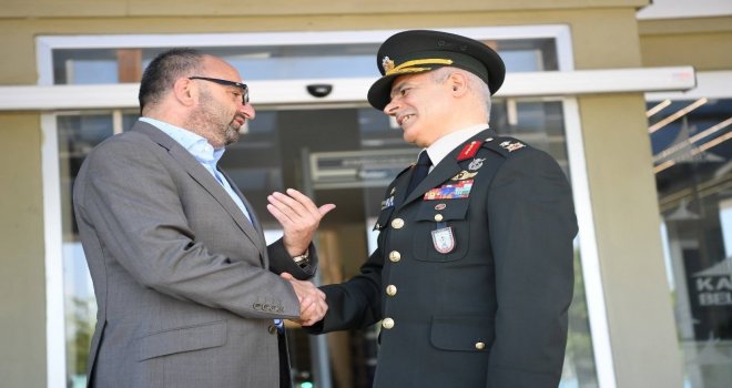 Emekli olmaya hazırlanan EDOK Muharebe Hizmet Destek Eğitim ve Garnizon Komutanı Tuğgeneral Kazım Dalkıran, Kartepe Belediye Başkanı Hüseyin Üzülmezi makamında ziyaret etti.