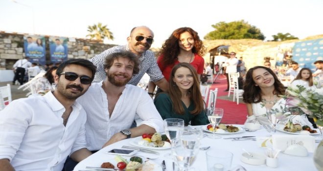 TRT 1nin merakla beklenen dizisi Egenin Hamsisi, dün akşam izleyicilerle buluştu. Tüm kategorilerde birinci olarak reyting rekoru kıran dizinin ilk bölümünü, TRT yöneticileri, tüm dizi ekibi, Seferihisar Sığacık Kaleiçinde düzenlenen bir yemekte izledi.
