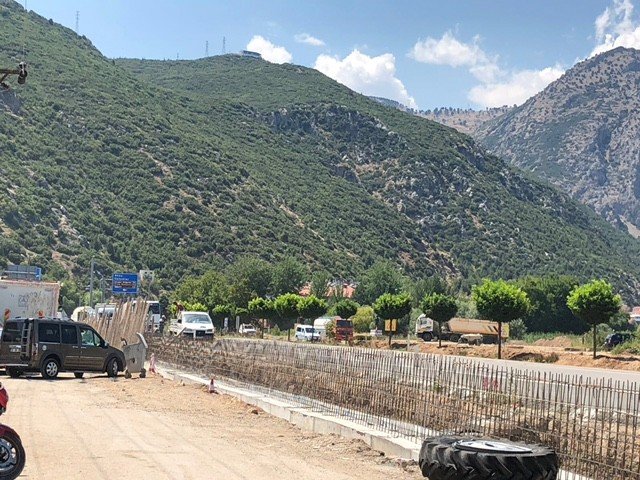Eğirdir-Konya karayolu yapımı sırasında, çift şeritli olarak sıcak asfalt ile kaplanan, ilçedeki sanayi çarşısı servis yolu tarafında yapımına başlanan duvar inşaatı durduruldu.