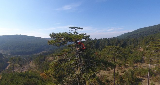 Balıkesirde ağaç budayan orman işçileri görenlerin yüreğini ağzına getiriyor. Yerden 50 metre yüksekte ağaçları budayarak hayatlarını kazanan orman işçilerinin ağaçların zirvesindeki akrobasiyi andıran anları kameralar tarafından görüntülendi.