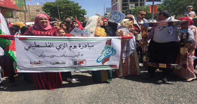 Filistin Kıyafet Günü yürüyüşüne katılan Filistinliler, milli kıyafetler içinde mahalli ve milli şarkılar söyledi. Filistin Kıyafetleri Komitesinden Hana El-Malki, Filistinlilerin bütün dünyada kıyafet miraslarına sahip çıkmaları çağrısında bulunarak, işgalci İsrailin bu mirası çalmaması için Kıyafet Günü düzenlediklerini söyledi. Filistin Kıyafet Günü girişimcilerinden Lana Hicazi de her yerde ve durumda Filistinlilerin milli kıyafetlerini giyerek miraslarına sahip çıkmalarını istedi. İsrail işgal güçlerinin düzenledikleri fuarlarda İsrail milli giysileri diye Filistin kıyafetleri giydikleri kaydedildi. İsrailin Adalet Bakanı Ayelet Shakedin bir yıl önce uluslararası bir festivalde İsrailin geleneksel kıyafeti olarak lanse ettiği Filistin kıyafeti giydiğine dikkat çekildi.