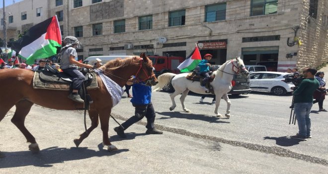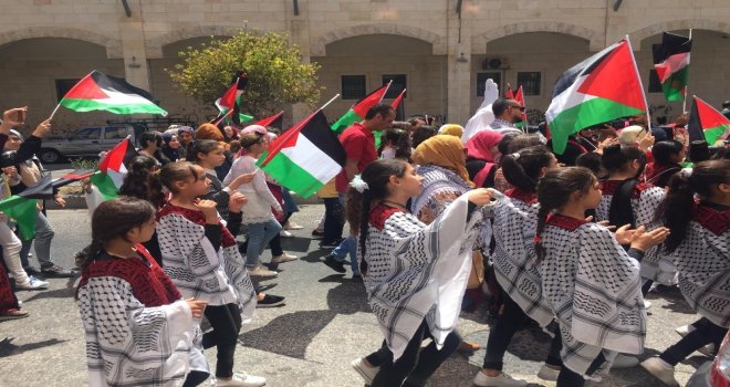 İsrail işgali altında bulunan Filistinin El Halil şehrinde yüzlerce Filistinli, İsrailin Filistinlilerin geleneksel giysi kültür mirasını çalma siyasetine karşı geleneksel kıyafetler giyerek yürüyüş yaptı.