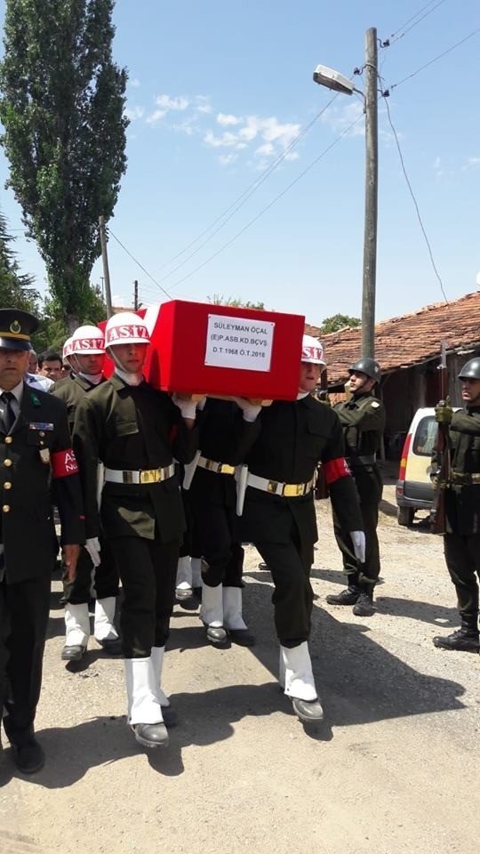 Kırıkkalenin Delice ilçesindeki yazlığında plastik boru eklentisi yaparken elektrik akımına kapılması sonucu hayatını kaybeden emekli Piyade Astsubay Kıdemli Başçavuş Süleyman Öçalın cenazesi askeri törenle toprağa verildi.