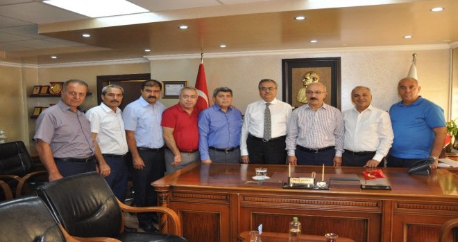 Eski Kalkınma Bakanı Lütfi Elvan ile Mersin Valisi Ali İhsan Su, Mersin Esnaf ve Sanatkarlar Odaları Birliği (ESOB) Yönetim Kurulu Başkanı Talat Dinçeri ziyaret etti.