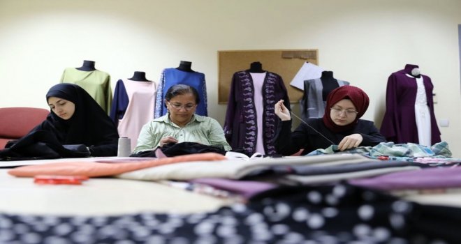 Bağcılar Belediyesi Kadın ve Aile Kültür Sanat Merkezinde bulunan Dikiş-Nakış kursu, tekstille uğraşan kadınların uğrak yeri oldu. Zamanlarının çoğunu bu binada geçiren kursiyerlerin hepsinin ayrı bir geliş amacı var. Kimi evde boş oturmayı kendine yakıştıramadığı için kimi de aileye ek kazanç sağlamak için kursa gidiyor. Kadınlar bir yandan model çizimi, ölçüm, kesim ve dikiş yaparken diğer yandan da aralarında sohbet ederek keyifli zaman geçiriyorlar. Bu samimi ve sıcak iş ortamı kadınlar için rehabilitasyon merkezi özelliği de taşıyor.