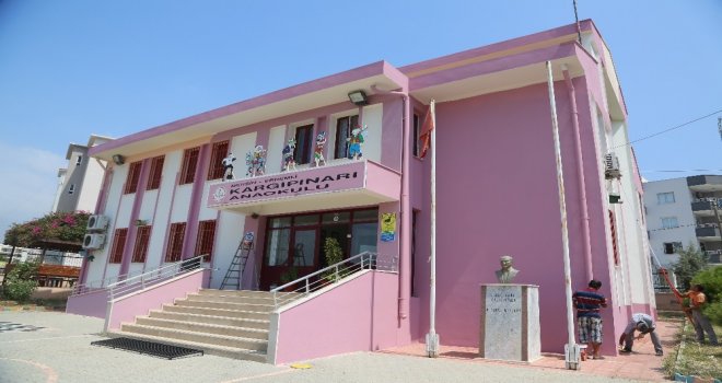 Erdemli Belediyesi 2018-2019 eğitim-öğretim yılı öncesi okullarda eksiklikleri olan boya, badana ve çevre düzenlemesi çalışmalarını gerçekleştiriyor.