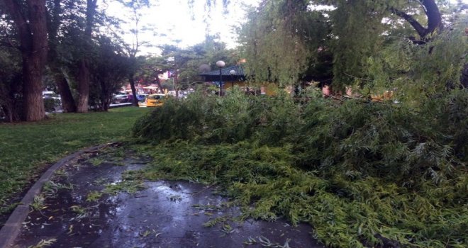 Erzincanda etkili olan fırtına ve yağmur ağaçların devrilmesine neden oldu.