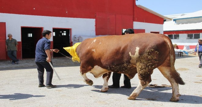 Erzurum hayvan pazarında 1 ton 100 kilogram ağırlığındaki kurbanlık tosun, 25 bin TLden satışa çıkarıldı.