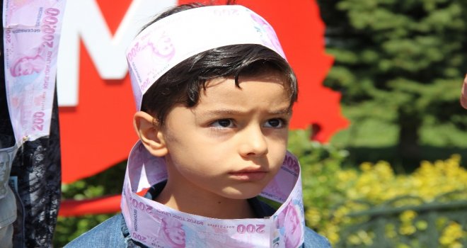 Erzurumda bir vatandaş kendi oğlunun üzerine Türk lirası ve dolar yapıştırarak protesto etti.