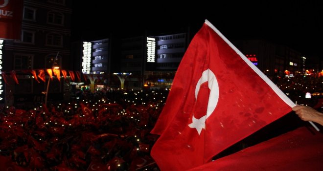 Vatandaşların 15 Temmuz Demokrasi ve Milli Birlik Gününde Erzurumda tuttuğu demokrasi nöbeti sabahın ilk ışıklarına kadar devam edecek.