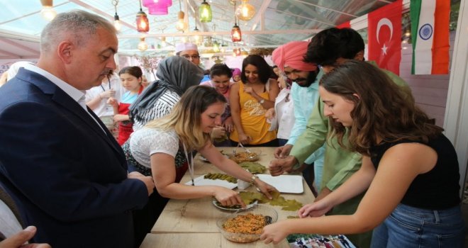 ESERli öğrenciler, sertifika heyecanının yanında bir de yabancı öğrenci arkadaşlarını ağırlamanın mutluluğunu yaşadı. AİESEC Derneğinin eğitim programı kapsamında 12 farklı ülkeden ESERe gelen 19 öğrenci de yöresel kıyafetleri ile sertifika programına katıldı. Türklere özgü yemeklerden oluşan sofrada yabancı öğrenciler önce Başkan Remzi Aydın ile birlikte yemek yaptı. Mantı kapatmaktan yaprak sarmaya kadar birçok farklı yemeğin yapılışını gören misafir öğrenciler bu etkinlikten oldukça mutlu oldu. Yemekleri yaparken Başkan Aydın ile de sohbet etme fırsatı yakalayan yabancı öğrenciler, hem kendi kültürlerini Başkan Aydına tanıttı hem de ESER hakkındaki düşüncelerini paylaştı. ESERi ömürleri boyunca unutmayacaklarını ve ESERdeki eğitimlerden çok etkilendiklerini söyleyen yabancı öğrenciler, bu hizmetinden dolayı Başkan Aydına teşekkürlerini sundu.