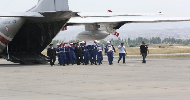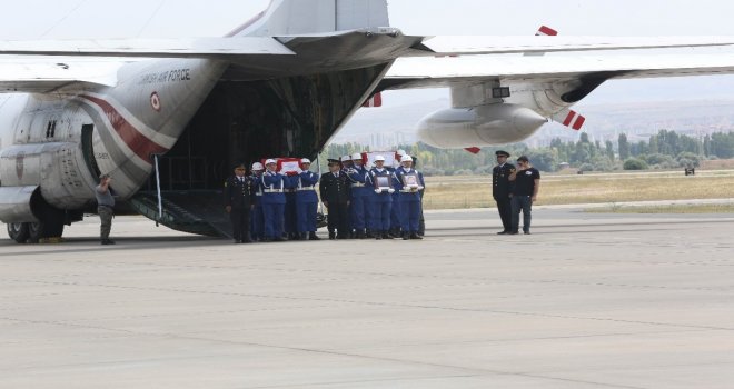 Hakkarinin Yüksekova ilçesinde, PKKlı teröristlerin yola tuzakladığı patlayıcının sivil aracın geçişi sırasında infilak ettirilmesi sonucu şehit olan Astsubay Çavuş Serkan Karakayanın eşi Nurcan Karakaya ve 11 aylık oğlu Bedirhan Mustafa Karakayanın naaşları, uçakla getirildiği Kayseriden karayolu ile memleketleri Sivasın Şarkışla ilçesine uğurlandı.