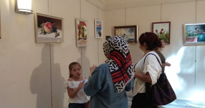 Burslı ressam Hülya Kocamaz tarafından açılan resim sergisi ilgi gördü.
