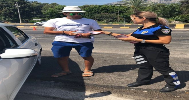 Antalyada tatil yaptıktan sonra evlerine dönmekte olan vatandaşlara ve yabancı turistleri taşıyan araçların sürücülerine trafik kurallarına uymaları ve hız limitlerini aşmamaları konusunda uyarı çalışmaları yapılıyor.