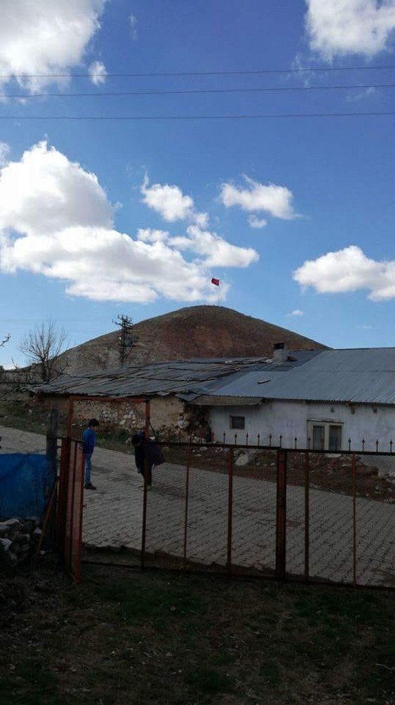 Sivas merkeze bağlı Hasbey köyünde bulunan evliya tepesine köylüler şehitler anısına yaptırdıkları Türk bayrağını astılar.