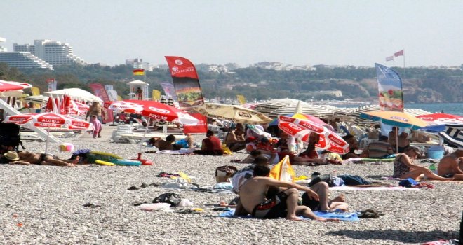 Dünyaca ünlü Konyaaltı sahilinde yerli ve yabancı turistler denizin keyfini çıkarıyor. Hava sıcaklığının 32, deniz suyu sıcaklığının 29 derece ölçüldüğü Antalyada, sıcaktan bunalan vatandaşlar Konyaaltı sahiline akın etti. Yurdun farklı bölgelerinde sağanak yağış beklenirken, Antalyada yine manzara değişmedi ve tatilciler Eylül ayının ilk gününde de denize girmeye devam etti. Bazı tatilciler denize girerken, bazı tatilciler ise şezlonglara uzanarak güneşlenmeyi tercih etti. Can simitleriyle denize giren çocuklar sıcak hava ve denizin keyfini çıkardı.
