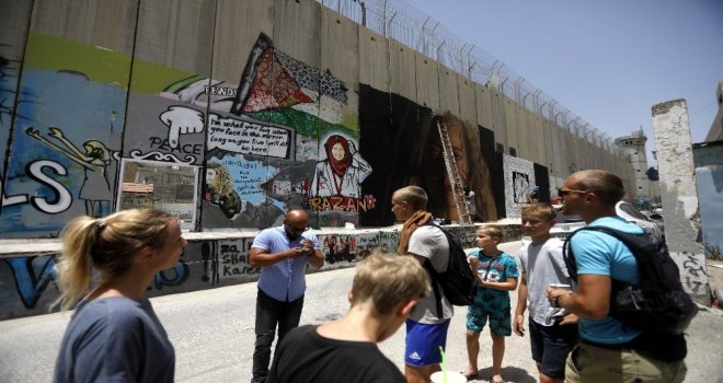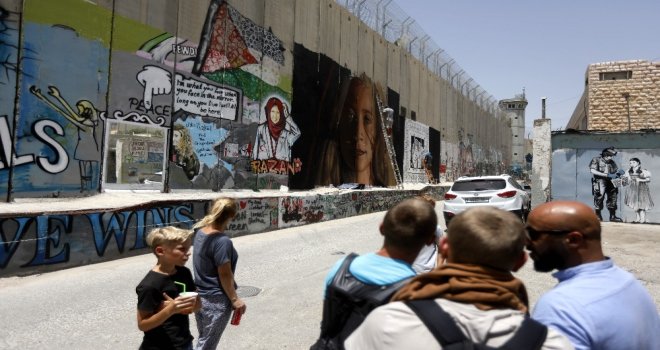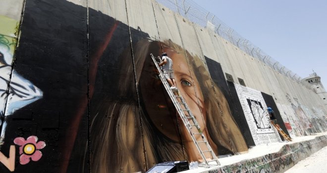 Batı Şerianın Beytüllahim kentinde İsrail tarafından inşa edilen Ayrım Duvarına Tamiminin resmini çizen sanatçılar, İsrail askerine tokat atan Filistinin “cesur kızı” Ahed Tamimi ile gurur duyduklarını açıkladı.