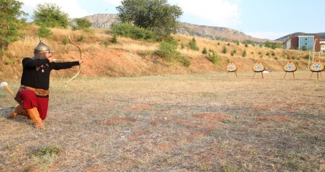 Kütahyada Ağustosun ilk haftasında düzenlenecek olan Geleneksel Okçuluk Yarışmasına hazırlanan Tokatlı sporcular, kıyafetleri, ok ve yaylarıyla tarihi film ve dizi karakterlerini aratmıyor.