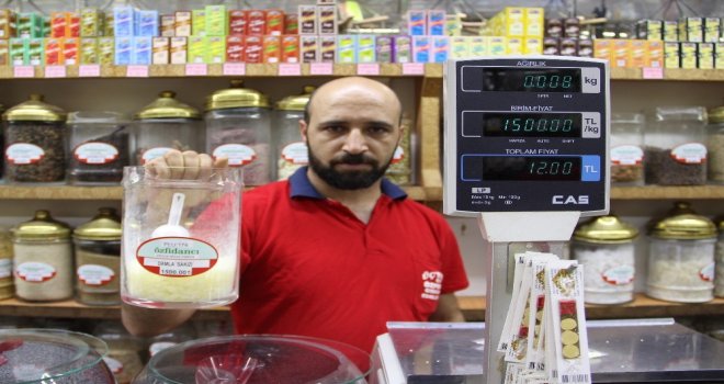 Sivasta 8 yıldır aktarlık yapan Mustafa Sakin, damla sakızının ithal bir ürün olduğu için dolarla birlikte fiyatının yükseldiğini belirterek, “Damla sakızı ithal bir ürün. Şu anda pahalı olmasının sebebi dolardaki hızlı artış. Türkiye de yetişmiş olsa daha ucuza alınabilir. Damla sakızı; Yunanistan ve Arabistandan ülkemize geliyor. Türkiyeye daha çok giriş yapılan yer Yunanistan da bulunan Sakız adasıdır. Yaklaşık kilogram fiyatı bin 500 lira. Altınla eş değerdir. İnsanların kilo bazında almaları mümkün değil. Şu anda 3 gram, 5 gram 10 gram gibi miktarda alıyorlar. Bizlerde aylık olarak yaklaşık 1 kilo anca satıyoruz. Doğal ağaçta yetişen bir üründür. Fiyatın yüksek olmasının nedenlerinden birisi de ağaçların yanmasıdır. Bundan 1 ay önce fiyatı 800-900 lira civarındaydı. Şuan da ise fiyatı bin 500 lira oldu. Alacak insanlarda fiyatı duyunca 3 gram, 5 gram alıyorlar. Kimisi de almadan gidiyor. Fiyatları pahalı bulduğu için. Tatlıcılar muhallebi yapımında kullanır genelde. Tedavi amaçlı kullananlar da fazla dedi.