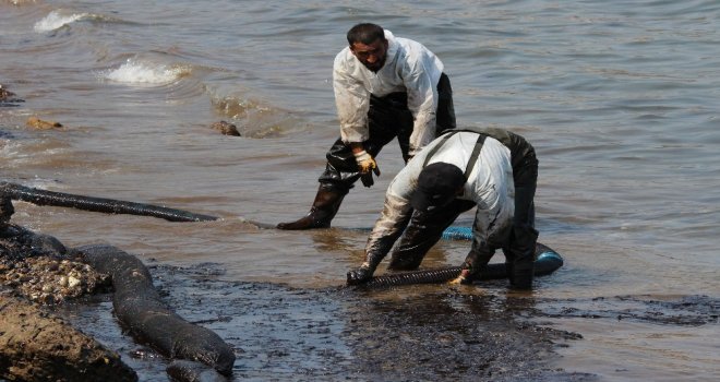 Foçada denizde geçtiğimiz gün kaynağı henüz belirlenemeyen petrol sızıntısı yaşanmıştı. Olayın yaşandığı ilk andan itibaren uzman ekipler çalışma yaparken, lisanslı ekipler yine sabahın erken saatlerinde denizin yüzeyini kaplayan petrolü temizlemek için sahile geldi. Büyük oranda yüzeyden temizlenen ancak daha çok kıyı kesimde yoğunlaşan petrol türevi, petler ve vidanjörlerle çekiliyor. Ekipler özellikle Gencelli Mahallesine yoğunlaştı. Ekip sayısı ise 60dan 100e çıkarıldı. Öte yandan ekiplerin çalışmaları ve denizdeki öbek öbek oluşan petrol türevi, havadan drone ile de görüntülendi.