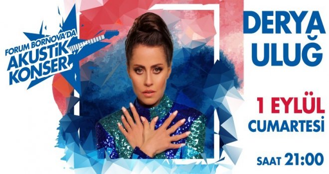 Yaz akşamlarını müzik şölenine dönüştüren Forum Bornova konserleri, büyük ilgi gören Simge Sağın, Fettah Can ve Merve Özbey konserlerinin ardından Derya Uluğ ile yaza veda ediyor. Son yılların popüler ismi Derya Uluğ, geleneksel yaz akşamı konserleri kapsamında 1 Eylül Cumartesi saat 21.00da sahne alacak.