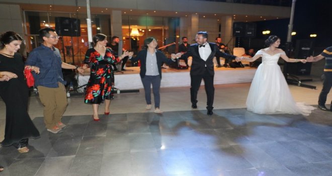 Genç çift, Tayvan, Amerika ve Japonyadan gelen misafirler ve konuklar gecenin geç saatlerine kadar Türkçe ve Kürtçe şarkılar eşliğinde halay çekip oyun oynadı.