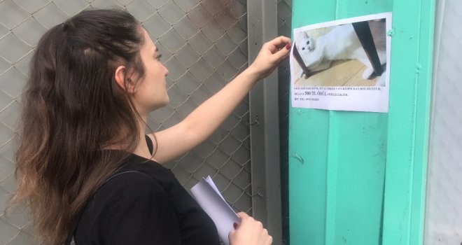 Muşta yaşayan Gamze Karaduman, 2 gün önce evin camından kaçan Van kedisini sokak sokak gezerek arıyor. Kentte birçok noktaya kedisinin resmini bastırdığı afişleri asan Karaduman, bir an önce kedisine kavuşmayı umuyor.