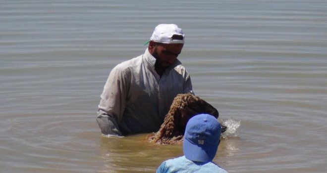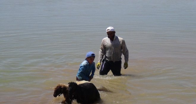 Hava sıcaklığını 40 dereceye yaklaştığı Gercüş ilçesinde vatandaşlar hayvanlarını sıcak havanın olumsuz etkisinden korumak için değişik yöntemlere başvuruyor. Hayvancılıkla uğraşan Cemal Şimşek keçi ve koyunlarını Kırkat göletine getirerek teker teker yıkarken, ilçe merkezindeki vatandaşlar da hortumla hayvanlarını serinletmeye çalışıyor.