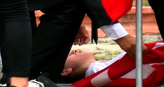 Tören için alanda bayrak flama tutan bir kız öğrenci baygınlık geçirdi. Alanda bulunan 112 ekipleri tarafından ilk müdahalesi yapılan öğrenci ambulansla hastaneye kaldırıldı. Öğrencinin sağlık durumunun iyi olduğu öğrenildi.