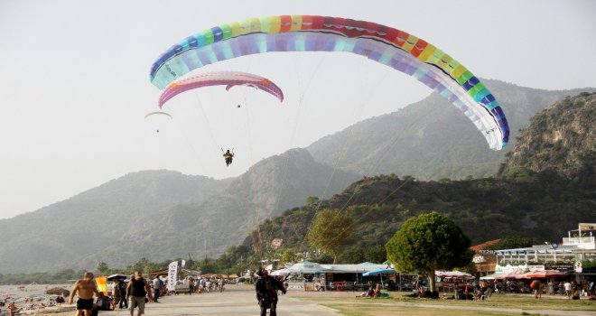 Muğlanın Fethiye ilçesinde 19. Uluslararası Ölüdeniz Hava Oyunları Festivalinde akrobasi pilotlarının gösterisi izleyenlerin nefesini kesti. Gökyüzü şovları aksiyon kameraları tarafından görüntülendi.