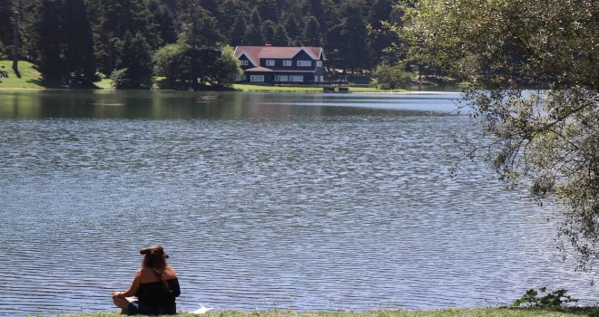 Bolunun doğa harikalarından Gölcük Tabiat Parkına hafta sonu tatili için gelen ziyaretçiler güneşli havanın tadını çıkardı.