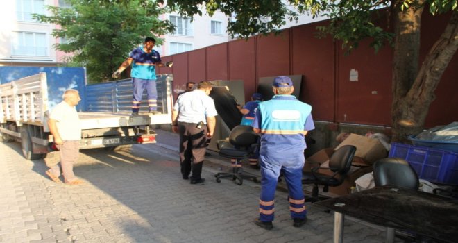 Kirasını ödeyemediği için eşyaları ile birlikte sokağa atılan görme engelli kadının eşyaları Esenyurt Belediyesine ait depoya kaldırılırken, kendisi de bir otele yerleştirildi.