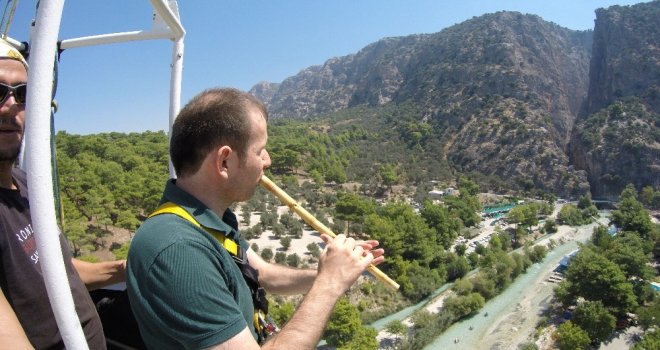 Gazetecilere açıklama yapan Çiftçi, 3 yıl önce de Babadağdan yamaç paraşütüyle uçuş yaptığını ve havada kaval çaldığını, daha önce de parasailing ve rafting de yaptığını söyledi.