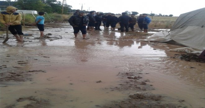 Gümüşhacıköyde Tarım İşçilerinin Çadırlarını Su Bastı
